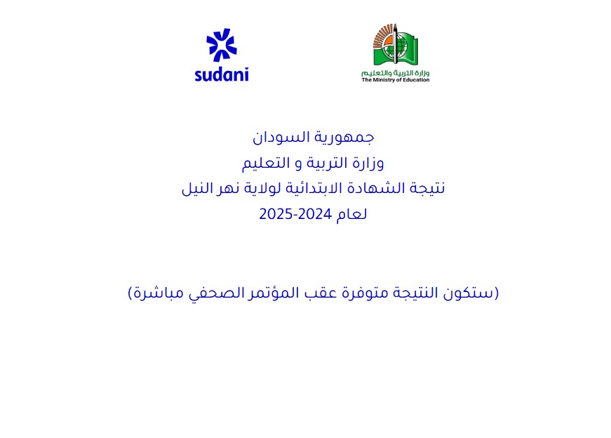 أقرت وزارة التعليم أن نتائج طلاب الشهادة الابتدائية بولاية نهر النيل ستكون متاحـاً الكترونياً عبر الموقع الرسمي لوزارة التربية والتعليم السودانية بالتحديد عقب المؤتمر الصحفي مباشرة، وعلي جميع الطلاب استخراج النتائج باستخدام رقم الجلوس وطبقا لارشادات الموضحة علي الموقع، اما بالنسبة للطلاب المقيمن في المدارس المصرية السودانية من المقرر ان تكون النتائج متاحة عبر كشوفات ورقية تابعة لادارة المدرسة بالاضافة الي الموقع الرسمي الذي سبق ذكره.