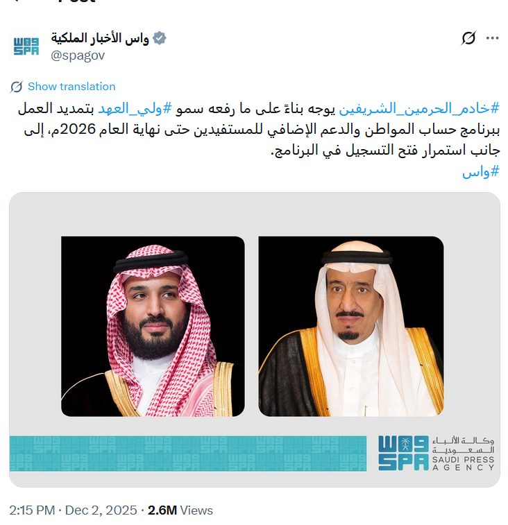 يمثل تمديد برنامج حساب المواطن خطوة مهمة لتخفيف الأعباء المالية على الأسر السعودية، ويعزز من قدرتها على مواجهة الظروف الاقتصادية الصعبة، كما يعكس حرص القيادة على تحسين جودة الحياة وتقديم الدعم المباشر للفئات الأكثر احتياجًا.