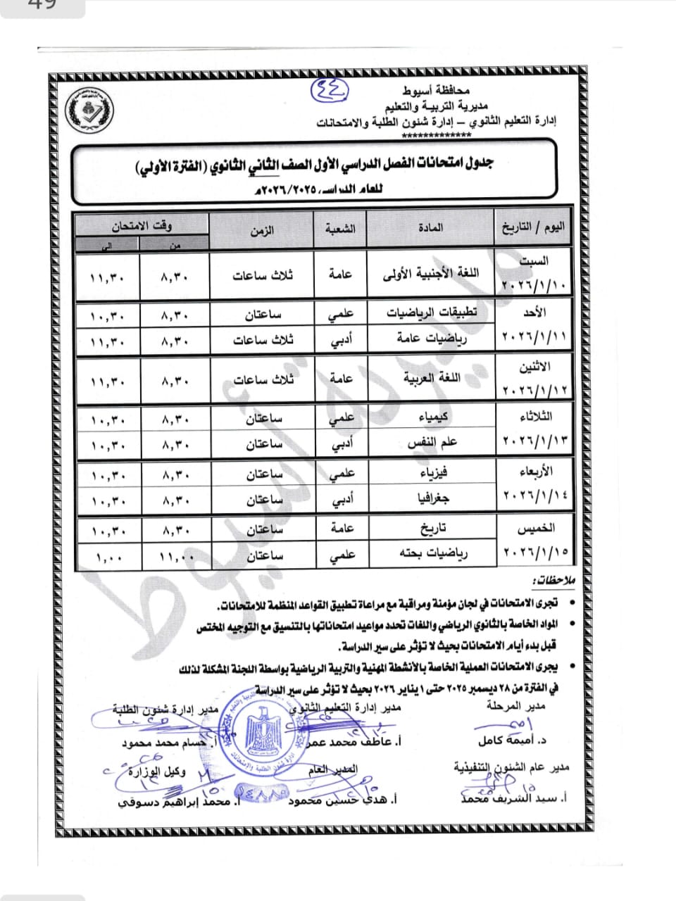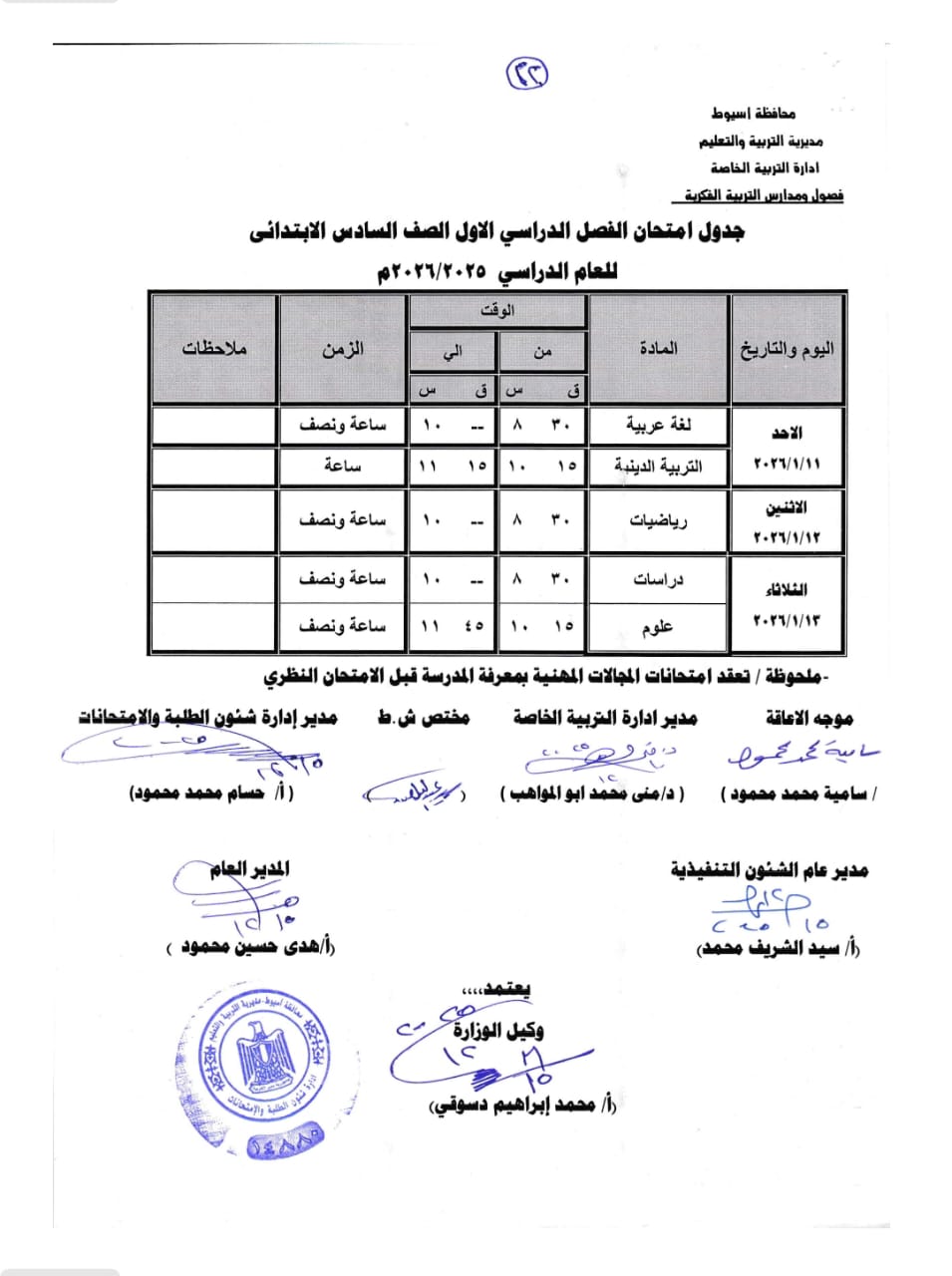 “بعد اعتمادها” جداول امتحانات الفصل الدراسى الأول 2026 جميع المحافظات