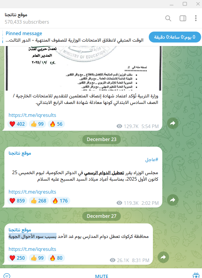 أكدت الجهات الرسمية أن تعطيل الدوام الرسمي غدًا الأحد 28 ديسمبر 2025 لا يشمل جميع محافظات العراق، وإنما يقتصر على بعض المحافظات فقط، وذلك بحسب تقييم كل محافظة لحالة الطقس فيها، كما ودعت الحكومات المحلية المواطنين إلى:
