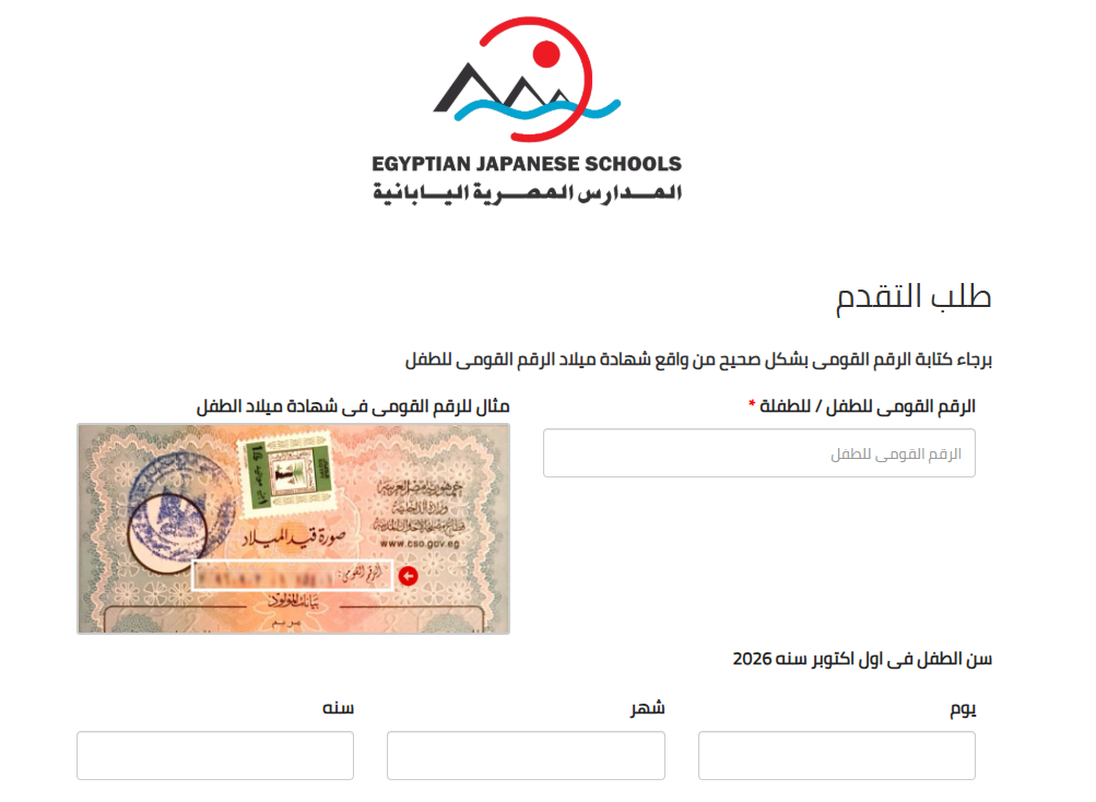 للتسجيل عبر الرابط الرسمي للمدارس المصرية اليابانية، قم باتباع الخطوات الآتية: